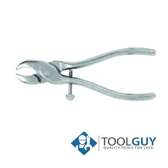 Heavy-duty 8-1/2″ hog ring pliers with bolt and grooved jaws. Opens up to 2-1/2″. Ideal for chain link fencing, animal enclosures, and large fastening jobs.