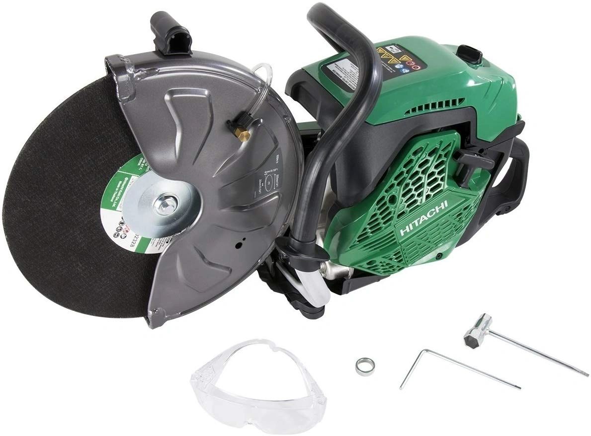 Hitachi’s new CM75EBP 14 In. gas cut-off saw is exactly what construction professionals have been looking for, a commercial tool designed with the professional in mind. Portable and easy to use, from back to front, every bit of this handheld machine is designed for ultimate performance. From it’s heavy duty three stage air filter to the standard water kit to on board tool storage. This tool is perfect for all day jobs for years to come. The CM75EBP is what you need for all your construction cutting needs. Best of all, it is backed by the trusted Hitachi name. 75cc Hitachi two-stroke engine meets emissions levels without sacrificing power, adding weight or extra parts, creating maintenance headaches Comes with (1) 14 In. abrasive wheel, 25 mm to 20 mm reducer ring, water kit and on board mounted service tools 14 In. blade diameter for larger jobs Decompression valve and one lever choke for easy cold starting
